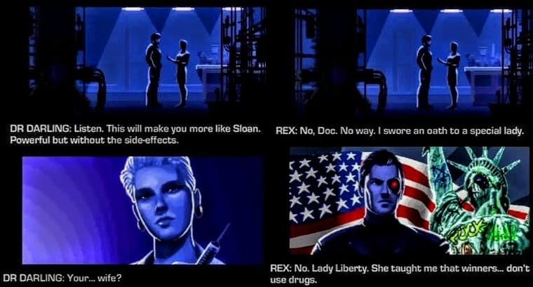 Set in a dystopian 2007, players take control of Rex “Power” Colt, a cyber-commando who exists solely to kill the bad guys, get the girl, and save the world. It’s a tongue-in-cheek setup that leans heavily into the clichés of the era it’s paying tribute to. Think one-liners after explosions, over-the-top villains, and a plot that feels ripped from a VHS tape you’d find in the bargain bin of a 1980s video store.