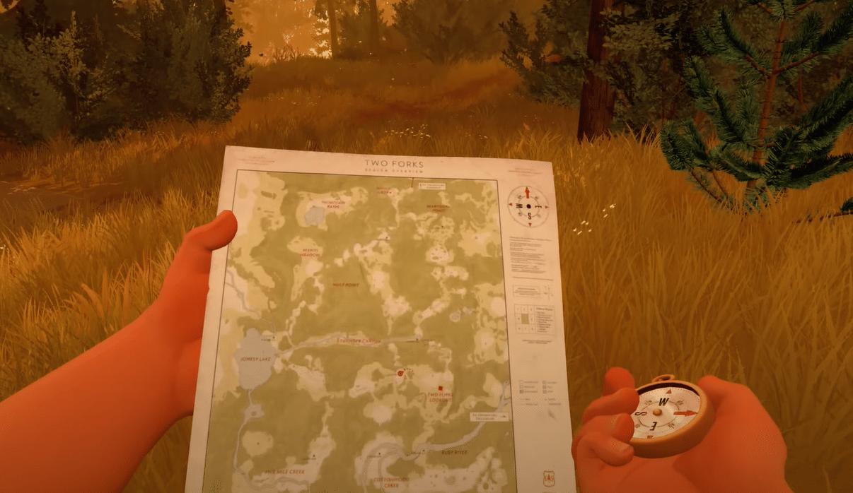 Firewatch isn't just about the conversations you'll have, though. While you'll often have specific objectives you need to accomplish for the story, you're free to roam around the vast wilderness that serves as your territory. The visual presentation is what you'll notice first and foremost. The art style and setting are beautiful and it's hard not to feel immersed in the world. The presentation really captures the loneliness and serenity of being out in nature and I found myself wandering around for no other reason than because I could. The game uses music sparingly and I actually enjoyed this. It was nice just walking around, listening to the wind blow and the birds chirp while I learned the lay of the land. When I found something interesting, it often lead to me being able to call Delilah, which allowed me to get to know her more and enjoy some great banter between her and Henry. As you explore and move around the area, you'll often consult your map and compass to get around and while that sounds super boring and mundane, I really felt like I was in the wilderness somewhere figuring out how to get around. I honestly felt like a fire lookout, and this area was mine to know and protect.
