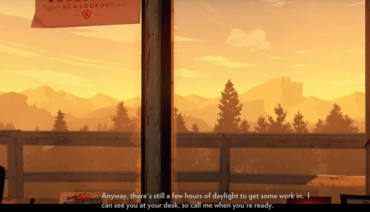 As the story progresses, Henry and Delilah find out that there's something going on in the Wyoming wilderness. Henry comes across an unknown individual and after this, strange events start to happen. It's through these events that Henry and Delilah's interactions really make the experience for the player. I was pretty hooked on the narrative almost as soon as the game started and it kept me hooked for the entire game. This is a huge testament to the story itself, but also the stellar voice acting the game has on offer. You felt the emotions of both characters and those emotions often drive your own actions. As you barrel towards the end of the game, I really felt connected to Henry as the main character and I genuinely had a bond with Delilah and cared for her and what you learn she's going through as a person. But would Henry and Delilah find peace for themselves by the stories end? Or have they just been using each other as a temporary escape from the things they can't let go of?