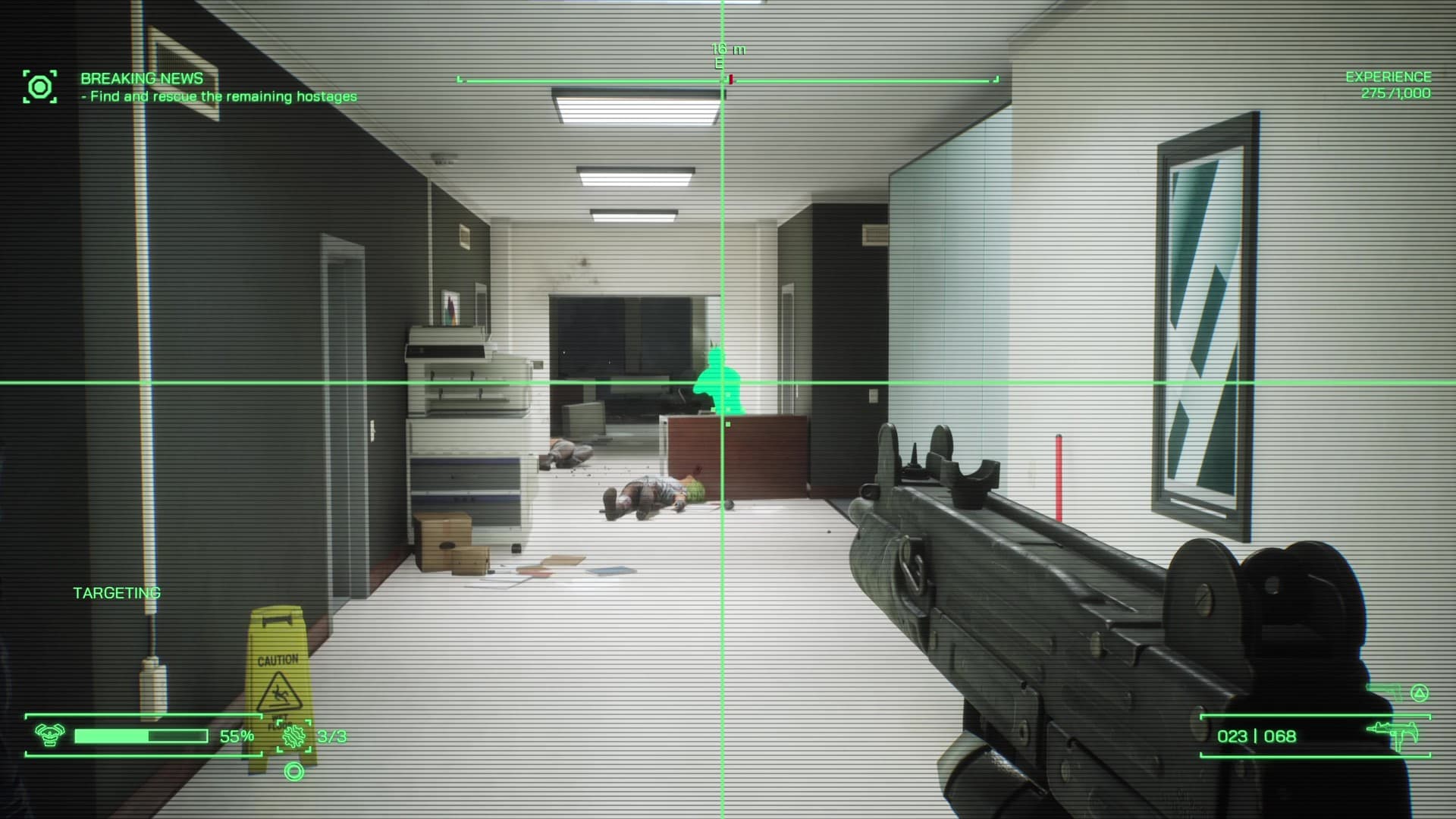 When the action kicks in, though, it really shines. RoboCop isn’t fast or agile, and the developers leaned into that. You feel the weight of his every step—slow, deliberate, but unstoppable. What he lacks in speed, he more than makes up for in durability. Taking heavy fire barely makes you flinch, and with your targeting computer helping to highlight enemies, you always feel in control of the battlefield. The Auto 9, RoboCop’s trusty sidearm, feels fantastic to fire. It delivers a meaty punch, and pulling off headshots is as satisfying as you’d hope. The over-the-top gore from the movies makes its return here, with enemies exploding into bloody chunks or getting launched across the room when you toss them like ragdolls. It’s chaotic, cheesy, and absolutely perfect for RoboCop.