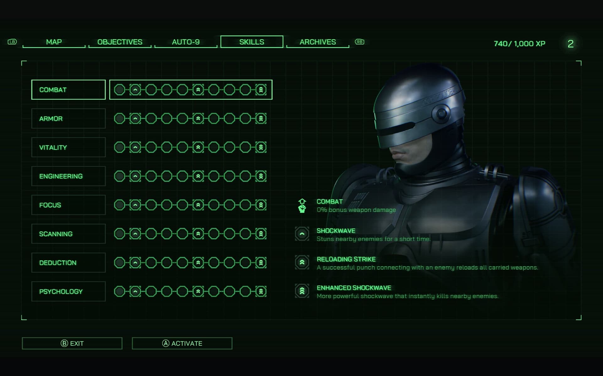 What I didn’t expect going in was how much RPG-style progression the game includes. Completing missions and side activities earns you experience points, which you can use to upgrade RoboCop’s systems. Whether you want to boost his combat efficiency, improve his detective skills, or make him more durable, there are plenty of options to tailor him to your preferred playstyle. It doesn’t get as deep as a full-blown RPG, but it adds just enough depth to make you think about your approach rather than simply charging in guns blazing every time.