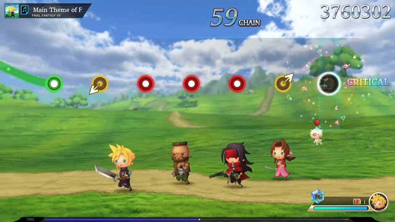 Each of your four party members contributes differently based on how well you hit your notes. A perfect chain might have Cloud unleashing a Limit Break or Terra casting a powerful spell. Which are all abilities you assign to your characters. The stronger you get, the more songs you can conquer, and the more satisfying it becomes to see your team grow in power. If you really put the time into building out the right characters and pairing them with other characters that compliment them or optimizing them for a specific battle style, you'll find yourself felling even the strongest of foes while you rock out to your favorite jams.