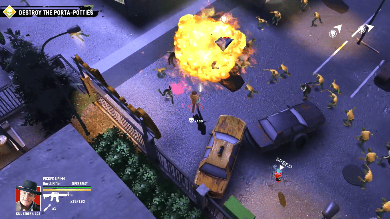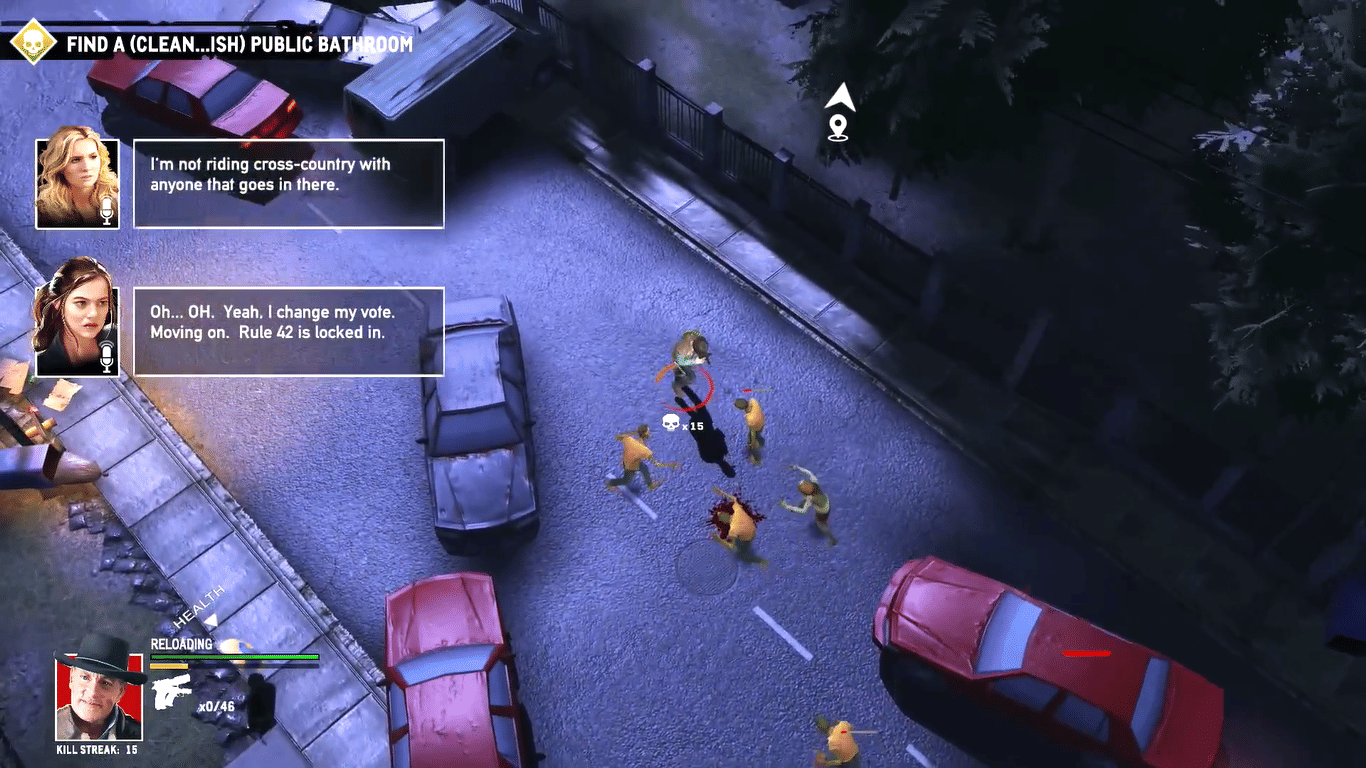 At its core, Road Trip is a straightforward twin-stick shooter. You move, you shoot, you reload, you throw grenades, take out zombies, and you repeat. I appreciated how "pick-up-and-play" the whole thing felt. There’s very little friction here, and within minutes I was comfortably clearing out packs of undead and pushing forward.